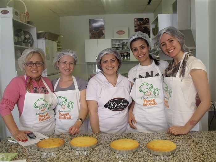 Her katılımcı kendi 8 kişilik pastasını tamamlamaktadır. Öğrendikleri uygulamalıdır ve bu güzel pastayı sevdikleri ile paylaşabilmektedir.